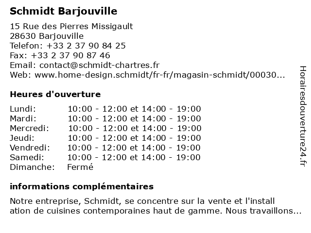 1 Cuisiniste Schmidt (Distance: 25,15 km) 50 Route d'Ormoy, 28210 Nogent-Le-Roi amenagement, cuisine, cuisines, cuisiniste, interieur, maison, meubles, schmidt, équipement 2 Cuisines Schmidt (Distance: 34,63 km) 1 Rue Marcel Dassault, 78125 Gazeran aménagement, cuisine, cuisines, cuisiniste, intérieur, schmidt, équipement 3 Cuisines Schmidt (Distance: 34,63 km) 1 Rue Marcel Dassault, 78125 Gazeran aménagement, cuisine, cuisines, cuisiniste, intérieur, schmidt, équipement 4 Cuisines Schmidt (Distance: 50,39 km) 2 Rue François Cevert, 78310 Mauperas aménagement, cuisine, cuisines, cuisiniste, intérieur, schmidt, équipement 5 Cuisines Schmidt (Distance: 50,39 km) 2 Rue François Cevert, 78310 Maurepas aménagement, cuisine, cuisines, cuisiniste, intérieur, schmidt, équipement 6 Cuisines Schmidt (Distance: 58,05 km) 12 Rue Paul Langevin, 78370 Plaisir cuisines, meubles, schmidt, électroménage |