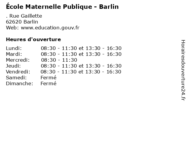 | Mardi | 08:30-11:30 et 13:30-16:30 |