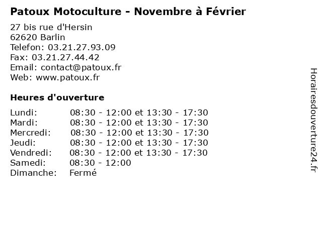 | Lundi | 08:30-12:00 et 13:30-17:30 |