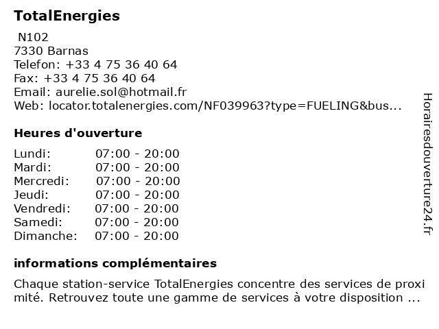 1 TotalEnergies Access - RELAIS DE FONTBONNE (Distance: 17,63 km) 103 RTE DE VALS, 07200 AUBENAS access, de, fontbonne, gas station, relais, station service, tankstelle, total, totalenergies 2 TotalEnergies Access - RELAIS LANGOUYROU (Distance: 25,14 km) 26 AV. MARECHAL FOCH, 48300 LANGOGNE access, gas station, langouyrou, relais, station service, tankstelle, total, totalenergies 3 Station-Service TotalEnergies (Distance: 31,44 km) - Le Bourg, 07120 Grospierres carburant, essence, pompes, service, station, totalenergies, véhicules 4 TotalEnergies - LA BOUTARESSE (Distance: 38,69 km) LIEU DIT L HABITARELLE - RN 88, 48170 CHATEAUNEUF DE RANDON boutaresse, gas station, la, station service, tankstelle, total, totalenergies 5 TotalEnergies - EURL TF DISTRIBUTION (Distance: 46,83 km) 160 AVENUE DU SOLEIL, 07250 LE POUZIN distribution, eurl, gas station, station service, tankstelle, tf, total, totalenergies 6 Access - TotalEnergies (Distance: 47,16 km) 32 Rue Chaussade, 43000 Le Puy-en-Velay access, point, totalenergies, ups |