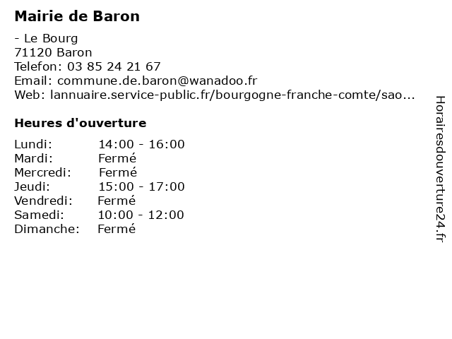 Termes de recherche pour Mairie de Baron:de, administration, mairie, service, communes, baron, services publics |