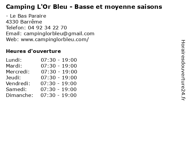 Termes de recherche pour Camping L'Or Bleu - Basse et moyenne saisons:et, basse, camping, bleu, loisirs, vacances, l'or, saison, saisons, accueil, tourisme, moyenne, caravaning |