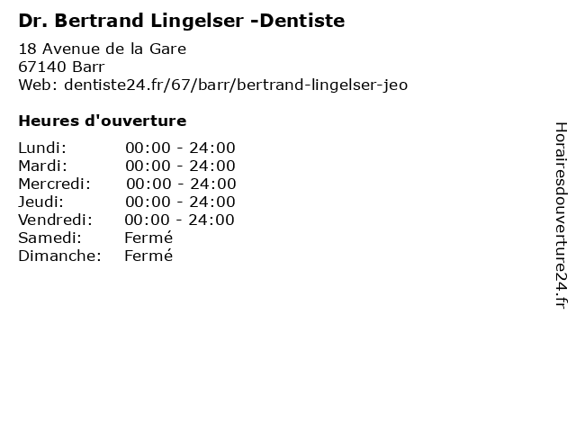 | Jeudi | 00:00-24:00 |