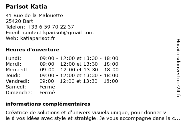 | Mardi | 09:00-12:00 et 13:30-18:00 |