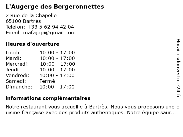 | Dimanche | 10:00-17:00 |
