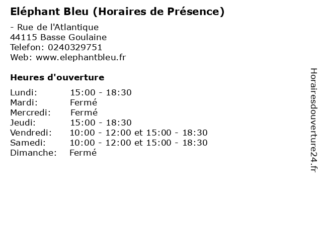 | Samedi | 10:00-12:00 et 15:00-18:30 |