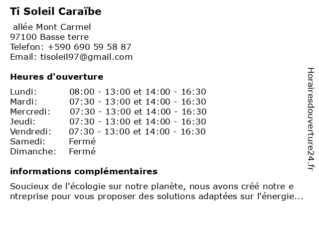 | Lundi | 08:00-13:00 et 14:00-16:30 |