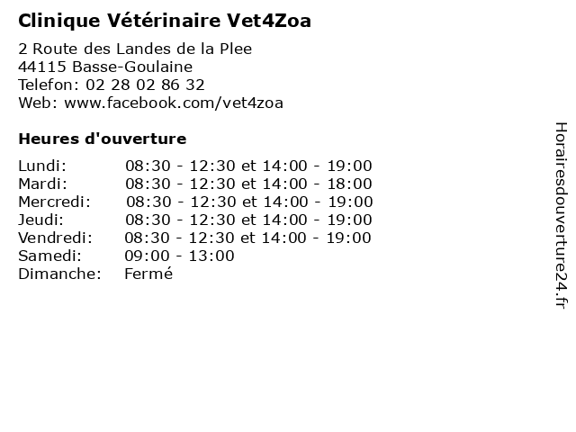 | Lundi | 08:30-12:30 et 14:00-19:00 |