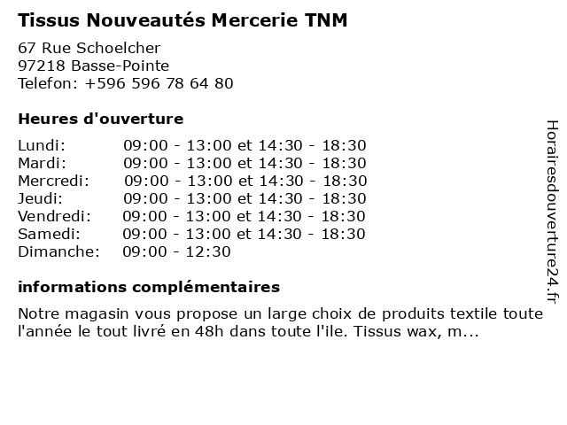 1 TISSUS NOUVEAUTES MERCERIE Martinique (Distance: 0,00 km) 67 r Schoelcher, 97218 BASSE POINTE bazar basse pointe, bazar martinique, linge de maison basse pointe, magasin de tissus martinique, martinique, mercerie, mercerie basse pointe, mercerie martinique, nouveautes, tissus, tissus wax martinique, vente tissus basse pointe, vente tissus martinique, vêtement grande taille femme martinique |