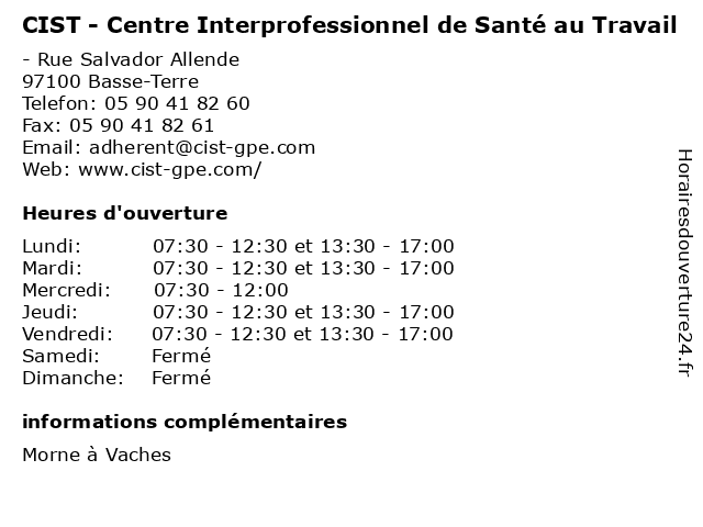| Lundi | 07:30-12:30 et 13:30-17:00 |