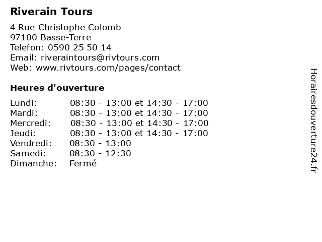 | Lundi | 08:30-13:00 et 14:30-17:00 |