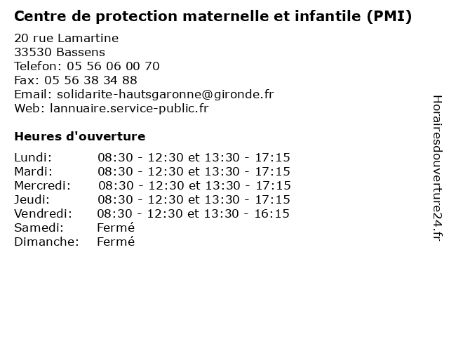 1 Centre de protection maternelle et infantile (PMI) (Distance: 3,76 km) 7 Avenue de la Libération, 33310 Lormont administration, assoc, associations, aux, centre, d'information, de, des, dédié, et, greffe, infantile, information, local, locale, maternelle, mission, personnes, pmi, protection 2 Centre de protection maternelle et infantile (PMI) (Distance: 5,66 km) 47 Rue Charles-Tournemire, 33300 Bordeaux administration, assoc, associations, aux, centre, d'information, de, des, dédié, et, greffe, infantile, information, local, locale, maternelle, mission, personnes, pmi, protection 3 Centre de protection maternelle et infantile (PMI) (Distance: 6,13 km) 2 Rue Pauline Kergomard, 33150 Cenon administration, assoc, associations, aux, centre, d'information, de, des, dédié, et, greffe, infantile, information, local, locale, maternelle, mission, personnes, pmi, protection 4 Centre de protection maternelle et infantile (PMI) (Distance: 6,73 km) 253 Avenue Thiers, 33100 Bordeaux centre, conseils, de, et, infantile, maternelle, parents, pmi, protection, prévention, puéricultrice, pédiatre 5 Centre de protection maternelle et infantile (PMI) (Distance: 6,92 km) n/a Rue du Stade, 33450 Saint Loubes administration, assoc, associations, aux, centre, d'information, de, des, dédié, et, greffe, infantile, information, local, locale, maternelle, mission, personnes, pmi, protection 6 Centre de protection maternelle et infantile (PMI) (Distance: 7,25 km) 23 rue Leyronneire, 33100 Bordeaux administration, assoc, associations, aux, centre, d'information, de, des, dédié, et, greffe, infantile, information, local, locale, maternelle, mission, personnes, pmi, protection |