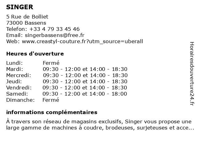 1 Singer - Centre commercial Carrefour Market (Distance: 27,87 km) , de l'Ousson,, 01300 Belley accessories, appliances, carrefour, centre, commercial, large, market, mechanical, projects, sewing, singer, small 3 SINGER VOIRON - Addict'couture (Distance: 36,17 km) 10 Rue du Colombier, 38500 Voiron addict'couture, singer, voiron 5 SINGER Moutiers- Le Chas De L'aiguille (Distance: 46,57 km) 54 Grande Rue, 73600 Moutiers chas, de, l'aiguille, le, moutiers, singer 6 Singer (Distance: 46,58 km) 54 Grande Rue,, 73600 Moûtiers accessories, appliances, large, mechanical, projects, sewing, singer, small |
