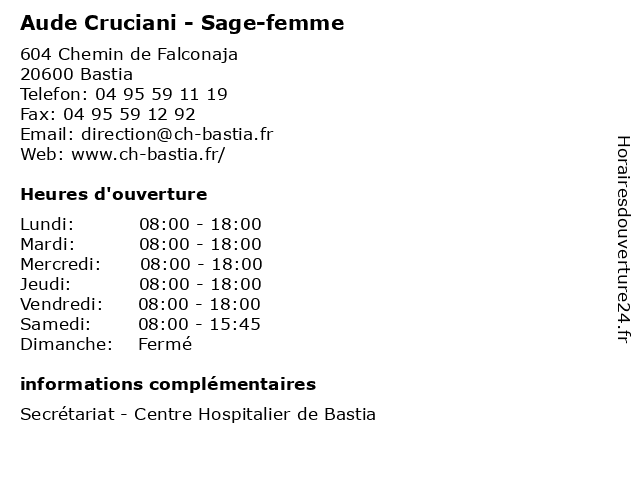 1 Cruciani Electricité Générale - SEEC (Distance: 6,16 km) Rue de Sainte-André, 20620 Biguglia cruciani, electricité, générale, seec 2 Franceschini Pinelli Cruciani Jeanne (Distance: 56,55 km) Maison Lucantoni, 20260 Calvi cruciani, franceschini, jeanne, pinelli, restaurants 3 Marie-Geneviève Pontus-Leroy - Sage-femme (Distance: nan km) 604 Chemin de Falconaja, 20600 Bastia consultation, docteur, femme, genevieve, geneviève, leroy, marie, med, médecin, médecine, pontus, sage, traitement 4 Lucile Pebret - Sage-femme (Distance: nan km) 604 Chemin de Falconaja, 20600 Bastia consultation, docteur, femme, lucile, med, médecin, médecine, pebret, sage, traitement 5 Cécile Thomas - Sage-femme (Distance: nan km) 604 Chemin de Falconaja, 20600 Bastia cecile, consultation, cécile, docteur, femme, med, médecin, médecine, sage, thomas, traitement 6 Agnès Moreau - Sage-femme (Distance: nan km) 604 Chemin de Falconaja, 20600 Bastia agnès, consultation, docteur, femme, med, moreau, médecin, médecine, sage, traitement |