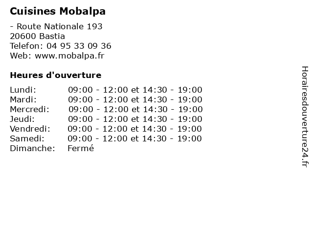 | Mercredi | 09:00-12:00 et 14:30-19:00 |