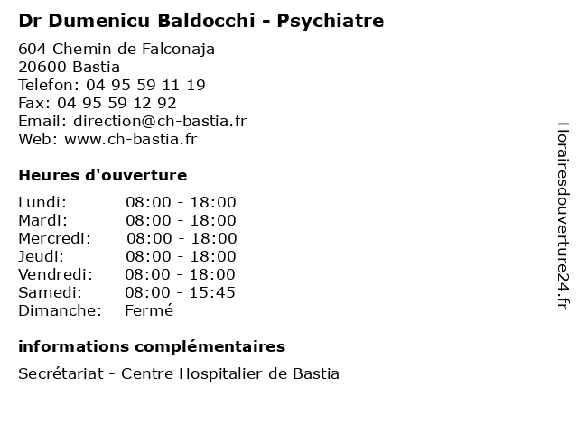 1 Dr Jocelyne Raptelet - Psychiatre (Distance: nan km) 604 Chemin de Falconaja, 20600 Bastia consultation, docteur, dr, jocelyne, med, médecin, médecine, psychiatre, raptelet, traitement 2 Dr Fabrice Sisco - Psychiatre (Distance: nan km) 604 Chemin de Falconaja, 20600 Bastia consultation, docteur, dr, fabrice, med, médecin, médecine, psychiatre, sisco, traitement 3 Dr Laurence Bonelli - Psychiatre (Distance: nan km) 604 Chemin de Falconaja, 20600 Bastia bonelli, consultation, docteur, dr, laurence, med, médecin, médecine, psychiatre, traitement 4 Dr Bettina Ferracci - Psychiatre (Distance: nan km) 604 Chemin de Falconaja, 20600 Bastia bettina, consultation, docteur, dr, ferracci, med, médecin, médecine, psychiatre, traitement 5 Dr Anna Ciosi - Psychiatre (Distance: nan km) 604 Chemin de Falconaja, 20600 Bastia anna, ciosi, consultation, docteur, dr, med, médecin, médecine, psychiatre, traitement 6 Dr Pierre Carbonnel - Psychiatre (Distance: nan km) 604 Chemin de Falconaja, 20600 Bastia carbonnel, consultation, docteur, dr, med, médecin, médecine, pierre, psychiatre, traitement |