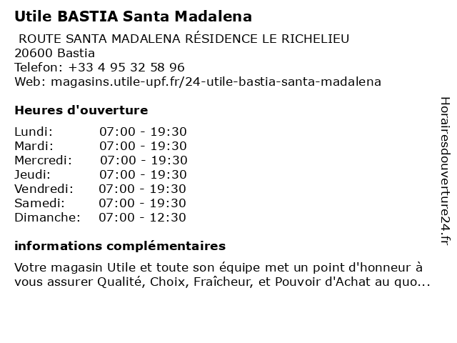 2 Pizzeria Santa Maria (Distance: 0,79 km) Qu Martyrs De La Liberation, 20200 Bastia 3pj, maria, pizzeria, restaurants, santa 6 Utile Supermarché (Distance: 7,84 km) - allée des Carrefours, 20600 Biguglia alimentation, fruits, légumes, supermarché, supérette, utile, épicerie |