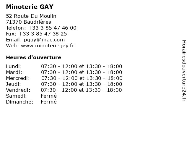 | Lundi | 07:30-12:00 et 13:30-18:00 |