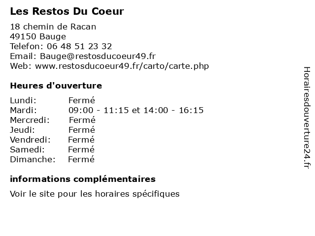 1 Les Restos Du Coeur (Distance: 12,19 km) 2 rue Solidaire, 49160 Longué-Jumelles aides, alimentaire, coeur, du, les, restos, santé, solidarité, soutien 2 Les Restos Du Coeur (Distance: 13,69 km) 3 rue de l'hopital, 49250 Beaufort en vallée aides, alimentaire, coeur, du, les, restos, santé, solidarité, soutien 3 Les Restos Du Coeur (Distance: 18,30 km) 1 Rue Beau Site, 49430 Durtal aides, alimentaire, coeur, du, les, restos, santé, solidarité, soutien 4 Focsie (Distance: 27,52 km) 7 rue des Compagnons, 49480 Verrières-en-Anjou accueil, focsie, intervention, orientation, psychosociaux, risques, soutien, écoute 5 Les Restos Du Coeur (Distance: 29,58 km) 53 route de Rouen, 49400 Saumur aides, alimentaire, coeur, du, les, restos, santé, solidarité, soutien 6 Les Restos Du Coeur (Distance: 32,37 km) 11 Boulevard du Doyenné, 49100 Angers aides, alimentaire, coeur, du, les, restos, santé, solidarité, soutien |