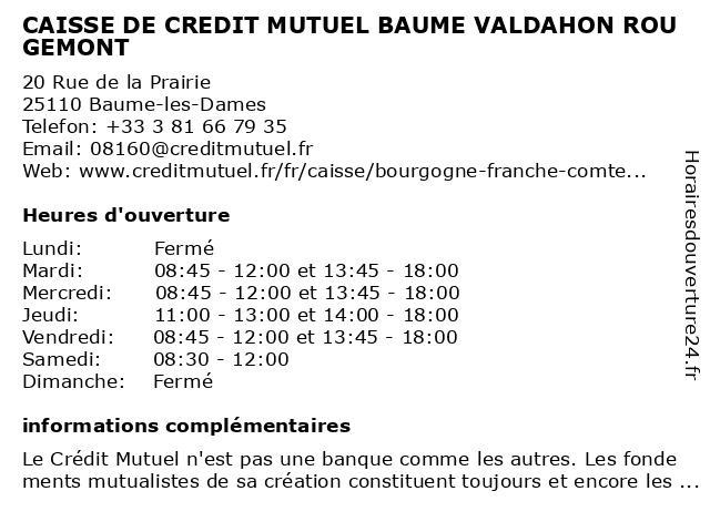 Termes de recherche pour CAISSE DE CREDIT MUTUEL BAUME VALDAHON ROUGEMONT:de, valdahon, crédit, mutuel, caisse, rougemont, baume |