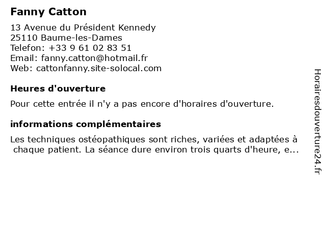 1 Dr Fanny Mottet - Chirurgien-dentiste - secrétariat (Distance: 22,86 km) 1 Rue de la Glacière, 25660 Saône chirurgien, consultation, dentiste, docteur, dr, fanny, med, mottet, secrétariat 2 Fanny Loizon - Ostéopathe (Distance: 27,37 km) 18 rue Belfort, 25000 Besançon cabinet, fanny, loizon, ostéopathe 3 Dr Fanny Meuriot - Radiologue (Distance: 28,43 km) 2 place Saint-Jacques, 25030 Besançon besançon, centre, de, diagnostique, dr, fanny, hospitalier, imagerie, meuriot, radiologie, radiologue, régional, thérapeutique, universitaire 4 Fanny Zussy - Masseur kinésithérapeute (Distance: 28,59 km) 12 Rue de la Forge, 25580 Nods consultation, docteur, fanny, kinésithérapeute, masseur, med, médecin, médecine, traitement, zussy 5 Fanny Gouritin - Psychologue clinicienne (Distance: 32,89 km) 3 Boulevard Alexandre Fleming, 25000 Besançon clinicienne, consultation, docteur, dr, fanny, gouritin, med, médecin, psychologue, traitement 6 Fanny Meunier - Sophrologue (Distance: 33,25 km) 5 Rue des Hauts de Pelousey, 25170 Pelousey fanny, medecin, meunier, sante, sophro, sophrologue |