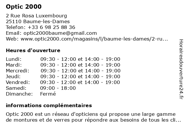 | Mercredi | 09:30-12:00 et 14:00-19:00 |