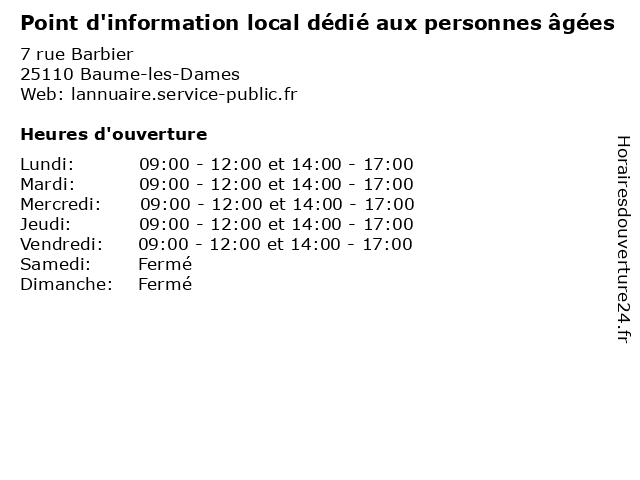 | Mardi | 09:00-12:00 et 14:00-17:00 |