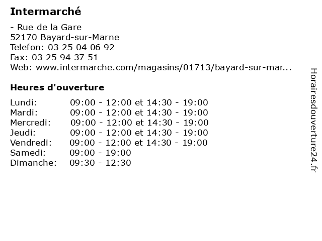 1 Intermarché station-service Bayard-sur-Marne (Distance: 0,14 km) Rue de la Gare, 52170 Bayard-sur-Marne bayard, intermarché, marne, service, station, sur 2 Intermarché Station Service (Distance: 0,33 km) . Rue de la Gare, 52170 Bayard-sur-Marne automobiles, intermarché, oil, service, services, station, stations essences 3 Intermarché station-service Bayard-sur-Marne (Distance: 4,30 km) Rue de la Gare, 52170 Bayard-sur-Marne bayard, intermarché, marne, service, station, sur 4 Intermarché (mai à septembre) (Distance: 11,04 km) - Rue du General Leclerc, 52130 Wassy intermarché, la fraîcheur, la qualité de leurs produits, mai, septembre, supermarchés 5 Intermarché station-service Joinville (Distance: 12,42 km) 24 Avenue de la marne, 52300 Joinville intermarché, joinville, service, station 6 Intermarché station-service Joinville (Distance: 12,44 km) 24 Avenue de la Marne, 52300 Joinville intermarché, joinville, service, station |