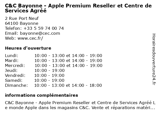 | Dimanche | 10:00-13:00 et 14:00-18:00 |