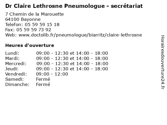 | Lundi | 09:00-12:30 et 14:00-18:00 |