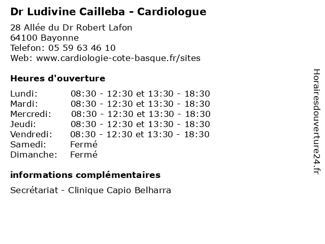 1 Dr Ludivine Cailleba - Cardiologue (Distance: 17,83 km) 7 rue Léonce Goyetche, 64500 Saint-Jean de Luz cailleba, cardiologue, consultation, docteur, dr, ludivine, med, médecin, médecine, traitement 2 Dr Alain Chambanier - Cardiologue (Distance: 0,00 km) 28 Allée du Dr Robert Lafon, 64100 Bayonne alain, cardiologue, chambanier, consultation, docteur, dr, med, médecin, médecine, traitement 3 Dr Marianne Berhouet - Cardiologue (Distance: 0,00 km) 28 Allée du Dr Robert Lafon, 64100 Bayonne berhouet, cardiologue, consultation, docteur, dr, marianne, med, médecin, médecine, traitement 4 Dr Xavier Harle - Cardiologue (Distance: 0,00 km) 28 Allée du Dr Robert Lafon, 64100 Bayonne cardiologue, consultation, docteur, dr, harle, med, médecin, médecine, traitement, xavier 5 Dr Matthieu Perlant - Cardiologue (Distance: 0,00 km) 28 Allée du Dr Robert Lafon, 64100 Bayonne cardiologue, consultation, docteur, dr, matthieu, med, médecin, médecine, perlant, traitement 6 Dr Benjamin Fialon - Cardiologue (Distance: 0,00 km) 28 Allée du Dr Robert Lafon, 64100 Bayonne benjamin, cardiologue, consultation, docteur, dr, fialon, med, médecin, médecine, traitement |