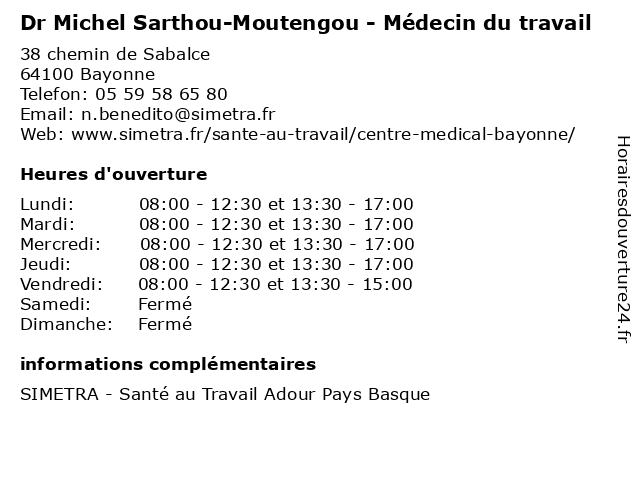 | Lundi | 08:00-12:30 et 13:30-17:00 |
