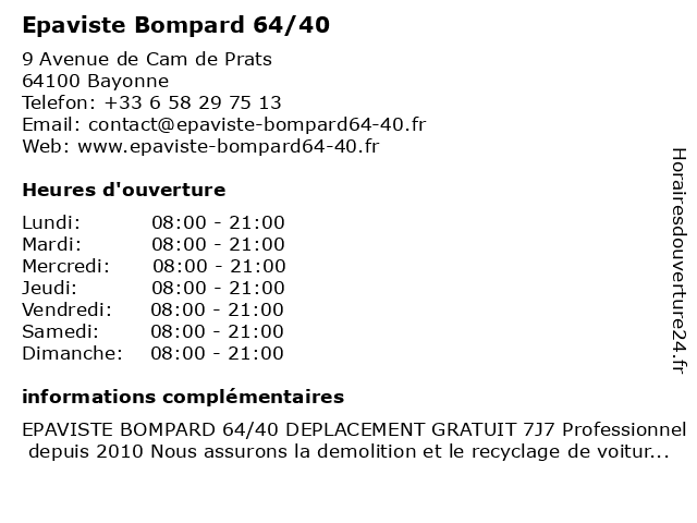 1 S.A.V. 64 40 Service Audio Visuel-SARL (Distance: 0,74 km) 22 Avenue Benjamin Gomez, 64100 Bayonne 40, 64, audio, s.a.v., sarl, service, visuel 2 Wok 64 (Distance: 0,80 km) 6-8 allée de Glain, 64100 Bayonne 64, bar, bistrot, brasserie, café, chinois, grill, restaurants, wok 3 64 (Distance: 3,34 km) 6 avenue Jean Léon Laporte, 64600 Anglet 64, accessoires, mode, mode pour femmes, vêtements pour femmes 4 Carrément Fleurs - Fleuriste Anglet Biarritz 64 - Livraison de fleurs à domicile (Distance: 3,82 km) 2 Avenue Eugène Bernain, 64600 Anglet 64, anglet, biarritz, bouquet de fleurs, bouquet mariée, bouquet naissance, carrément, compositions florales, de, domicile, fleuriste, fleurs, fleurs coupées, fleurs enterrement, gerbe de fleurs, livraison, livraison fleurs, offrir des fleurs 6 |