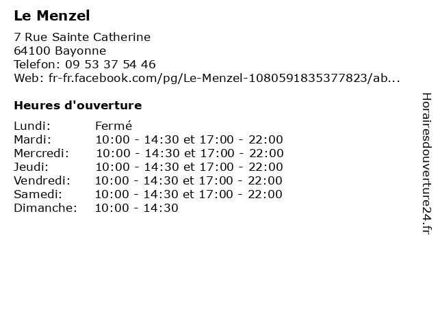 | Mardi | 10:00-14:30 et 17:00-22:00 |