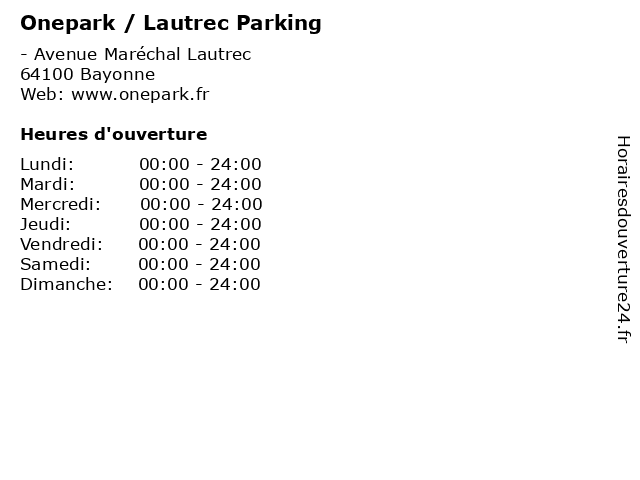 | 1 Onepark / Glacis Parking (Distance: 0,00 km) - Avenue Lautrec, 64100 Bayonne glacis, onepark, parking, services 2 Onepark / Porte d'Espagne Parking (Distance: 0,20 km) - Avenue de Pampelune, 64100 Bayonne d'espagne, onepark, parking, porte, services 3 Onepark / Tour-de-Sault Parking (Distance: 0,39 km) 8 Avenue Chanoine Jean Lamarque, 64100 Bayonne de, onepark, parking, sault, services, tour 4 Onepark / Owen Roe Parking (Distance: 0,61 km) - Avenue Jean Rostan, 64100 Bayonne onepark, owen, parking, roe, services 5 Onepark / Vauban Parking (Distance: 0,67 km) 1 Rue Vauban, 64100 Bayonne onepark, parking, services, vauban 6 Onepark / Pedros Parking (Distance: 0,76 km) - Avenue du Maréchal Leclerc, 64100 Bayonne onepark, parking, pedros, services |