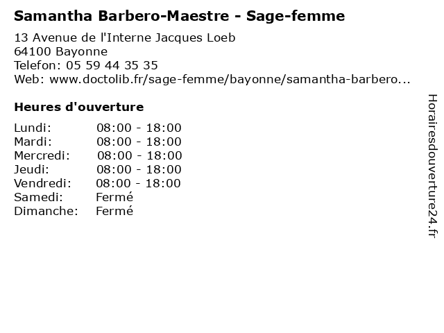 | Samedi | Fermé |