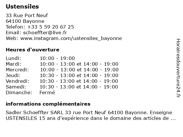 | Samedi | 10:30-13:00 et 14:00-19:00 |