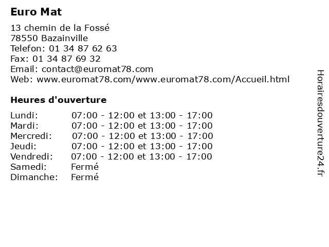 | Lundi | 07:00-12:00 et 13:00-17:00 |