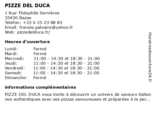 | Samedi | 11:00-14:30 et 18:30-21:00 |