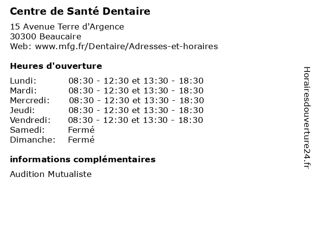 | Mardi | 08:30-12:30 et 13:30-18:30 |