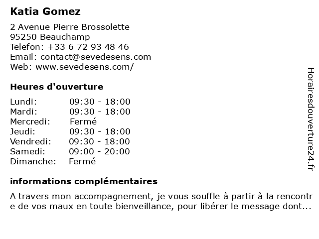 1 Sdf Manent Katia Et Roussel Gilles (Distance: 2,27 km) 20 Avenue De La Gare, 95150 Taverny gilles, katia, manent, restaurants, roussel, sdf 3 Dr Nestor-Gustave Gomez - Chirurgien viscéral et digestif (Distance: 5,53 km) 9 Avenue Louis Armand, 95120 Ermont chirurgien, digestif, docteur, dr, et, gomez, gustave, général, medecin, nestor, sante, services, viscéral 5 Dr. Katia Sisso - Dentiste (Distance: 13,12 km) 46 Rue du Marechal Leclerc, 95440 Écouen dentiste, dr., katia, medecins, sisso 6 Dr Paola Gomez - Chirurgien-dentiste (Distance: 15,29 km) 54 Avenue Charles de Gaulle, 92200 Neuilly-sur-Seine chirurgien, dentaire, dentiste, dr, gomez, implantologie, paola, parodontologie |