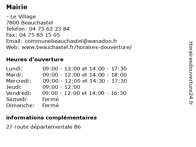 | Mardi | 09:00-12:00 et 14:00-18:00 |