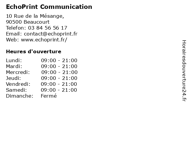 | Lundi | 09:00-21:00 |