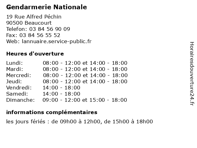 1 Gendarmerie Nationale (Distance: 4,59 km) 17 Impasse du Chênois, 25460 Étupes brigade, commandant, communauté, gendarme, gendarmerie, nationale, proximité, sécurité 2 Gendarmerie Nationale (Distance: 5,70 km) 20 Rue du Stade, 71310 Hérimoncourt brigade, commandant, communauté, gendarme, gendarmerie, nationale, proximité, sécurité 3 Gendarmerie Nationale (Distance: 6,51 km) 7 Rue Eugène Claret, 90100 Delle brigade, commandant, communauté, gendarme, gendarmerie, nationale, proximité, sécurité 4 Gendarmerie Nationale (Distance: 8,90 km) 2 Rue de la Goutte, 90700 Châtenois-les-Forges brigade, commandant, communauté, gendarme, gendarmerie, nationale, proximité, sécurité 5 Gendarmerie Nationale (Distance: 12,20 km) 43 Grande Rue, 25310 Blamont brigade, commandant, communauté, gendarme, gendarmerie, nationale, proximité, sécurité 6 Gendarmerie Nationale (Distance: 14,54 km) 6 Rue des Grands-Champs, 90100 Montreux-Château brigade, commandant, communauté, gendarme, gendarmerie, nationale, proximité, sécurité |