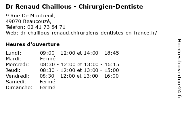 | Lundi | 09:00-12:00 et 14:00-18:45 |