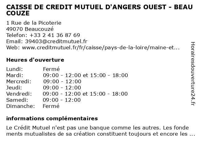 Termes de recherche pour CAISSE DE CREDIT MUTUEL D'ANGERS OUEST - BEAUCOUZE:de, crédit, ouest, mutuel, caisse, d'angers, beaucouzé |