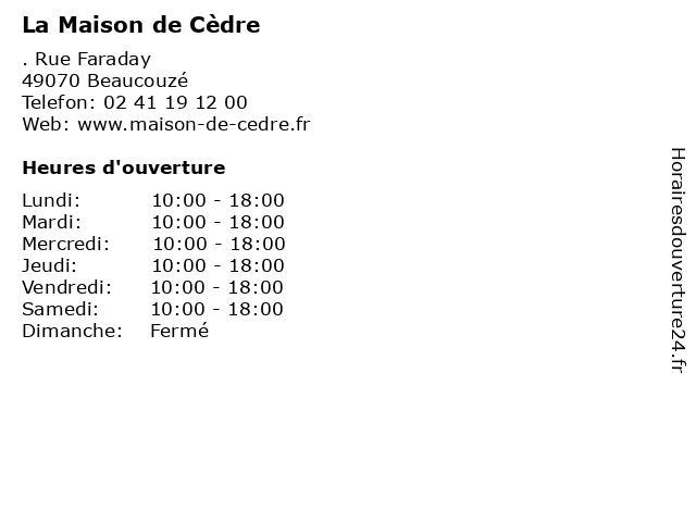 1 École primaire publique Le Cèdre Bleu (Distance: 17,17 km) 3 Rue de la Vallée, 49800 Sarrigné bleu, cours, cèdre, education, le, primaire, publique, services, école 2 Léon - Angers-Beaucouze FERMÉ DÉFINITIVEMENT (Distance: 0,71 km) Rue Du Landreau Parc D'activité Angers, 49070 Beaucouzé angers, beaucouze, définitivement, fermé, léon, restaurant belge, restaurant de poissons et fruits de mer 3 carré blanc paris (Distance: 1,68 km) s/n Ecoparc du Buisson, Centre Commercial l'Atoll, 49070 Beaucouzé angers, atoll, beaucouze, blanc, carré, castorama, centre, commercial, paris 4 Écouter Voir Optique BEAUCOUZE (Distance: 1,69 km) Rue Eugène Vallin, 49070 Beaucouzé beaucouze, optique, voir, écouter 5 GEMO BEAUCOUZE Chaussures et Vêtements (Distance: 1,80 km) Ecoparc du Buisson, 49070 Beaucouzé beaucouze, bijoux et accesoires, chaussures, et, gemo, lingerie, magasin bébé, maroquinerie, mode et habillement, vêtements, vêtements bébé, vêtements enfant, vêtements femme, vêtements homme 6 Logémaine (Distance: 4,23 km) 5 place Molière, 49100 Angers acheter, conception, construire, logémaine, louer, maison, vendre |