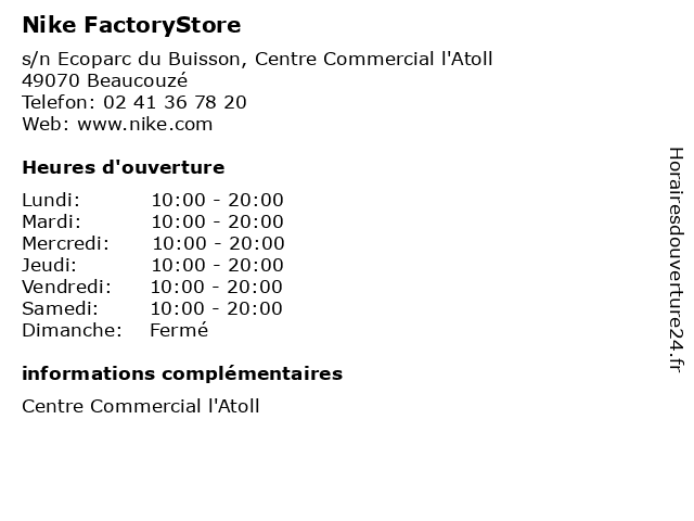 1 Nike Factory Store Angers (Distance: 0,16 km) Centre Commercial Atoll, 49070 BEAUCOUZE angers, factory, magasin de chaussures, magasin de vêtements pour enfants, magasin de vêtements pour femmes, magasin de vêtements pour hommes, mode, nike, store 2 Jour de Fête (Distance: 0,00 km) s/n Ecoparc du Buisson, Centre Commercial l'Atoll, 49070 Beaucouzé beaute, cafe, chaussures, de, enfants, fete, fête, jour, mode femmes, mode hommes, restaurant, sport 3 Casa (Distance: 0,00 km) s/n Ecoparc du Buisson, Centre Commercial l'Atoll, 49070 Beaucouzé beaute, cafe, casa, chaussures, enfants, mode femmes, mode hommes, restaurant, sport 4 Chaussea (Distance: 0,00 km) s/n Ecoparc du Buisson, Centre Commercial l'Atoll, 49070 Beaucouzé accessoires, chaussea, chaussures, sacs 5 Blackstore (Distance: 0,04 km) - Ecoparc du Buisson, 49073 Beaucouzé accessoires, blackstore, boutique, chaussures, habillements, mode 6 Intersport (Distance: 0,05 km) - Ecoparc du Buisson, 49070 Beaucouzé articles, chaussures, fitness, foot, football, intersport, musculation, natation, randonnée, running, ski, sport, sportif, sports, tennis, vélos, vêtements, équipement |