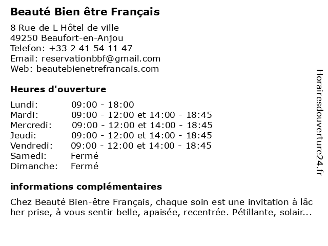 Mercredi | 09:00-12:00 et 14:00-18:45 |