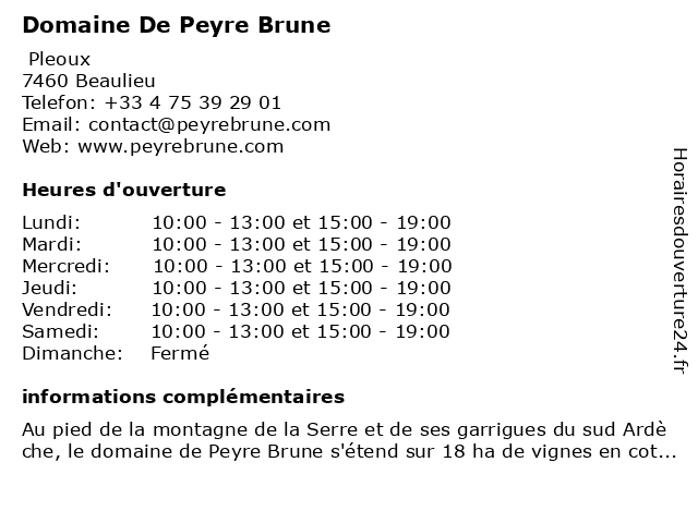 | Vendredi | 10:00-13:00 et 15:00-19:00 |